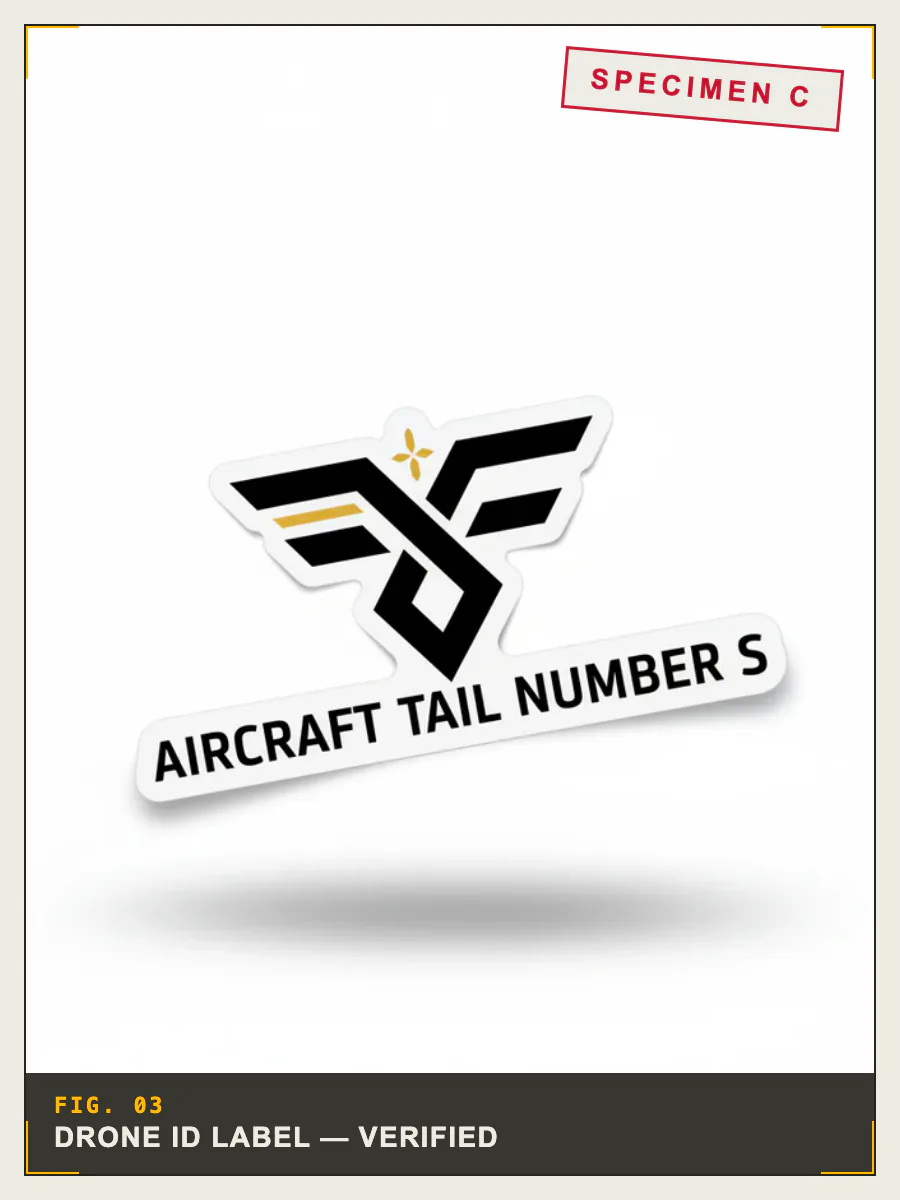 - All drones weighing 250g or more must be registered with Transport Canada through the Drone Management Portal. Once registered, you receive a C-F registration number that must be permanently affixed to the drone in a location visible without disassembly. Our drone labels are weatherproof and designed for all RPAS categories — basic, advanced, and complex operations.